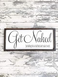 Get Naked Just Kidding This Is A Half Bath Sign Wood Bathroom Distressed Antique White Cream Wooden Hearts Inc